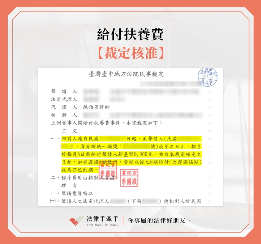 首頁/成功案例/【成功案例】給付扶養費.裁定核准|家事非訟案件 【成功案例】給付扶養費.裁定核准|家事非訟案件